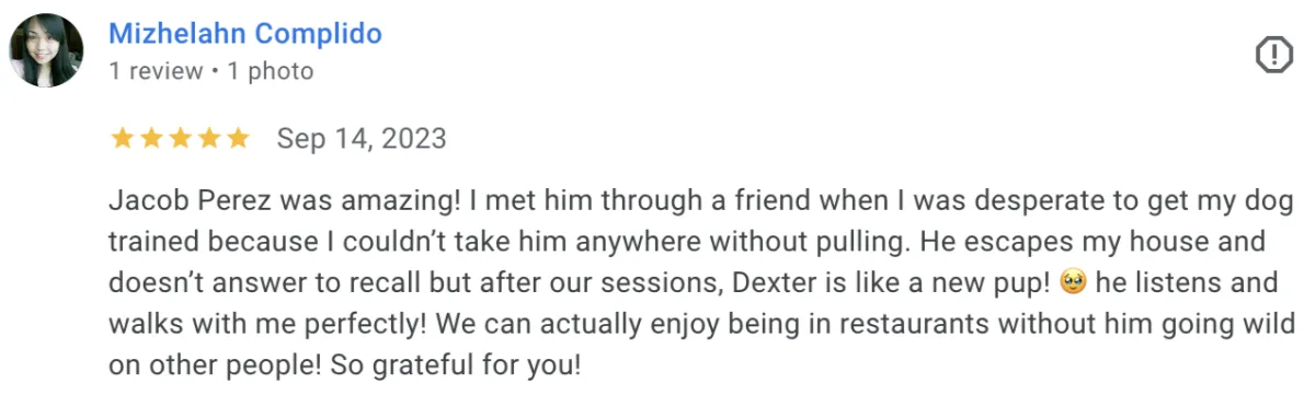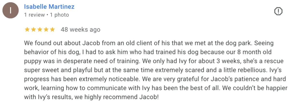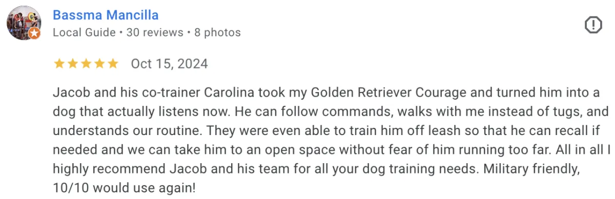🐾 Next-Step Training Recommendations If we’re the right fit, you’ll know exactly what comes next to turn your dog into the well-behaved pet you’ve always wanted.